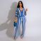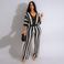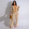 Női ruházat szexi női V-nyakú üreges csíkos hajtókás kötött széles nadrágkosztüm