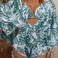 női szexi háromrészes öltöny temperamentum V-nyakú nyomtatott derék nyakkendő rövid szoknya fürdőruha
