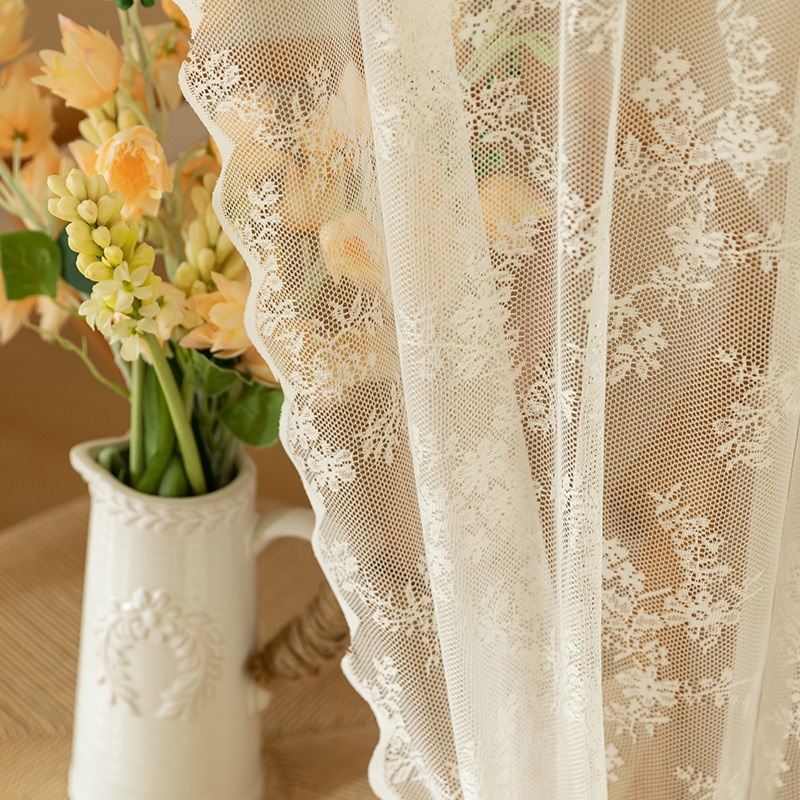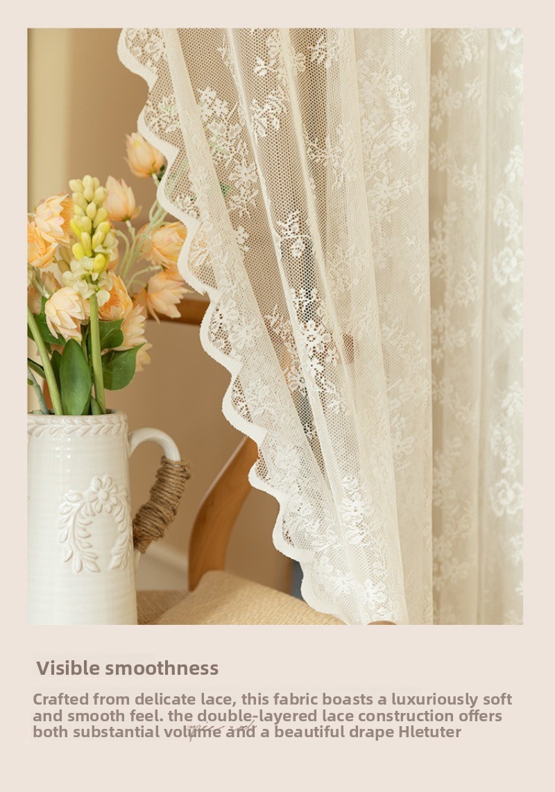 No Punching Velcro Curtain White Lace Window Screen Balcony Floating Curtain Partition Through Rod French Door Curtain Finished Curtain YOUMIHOME