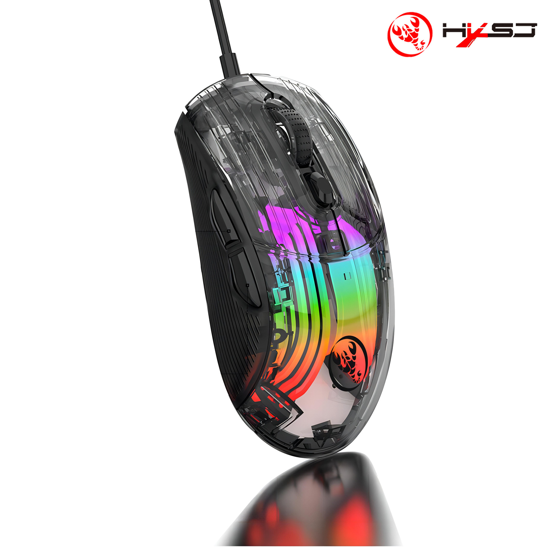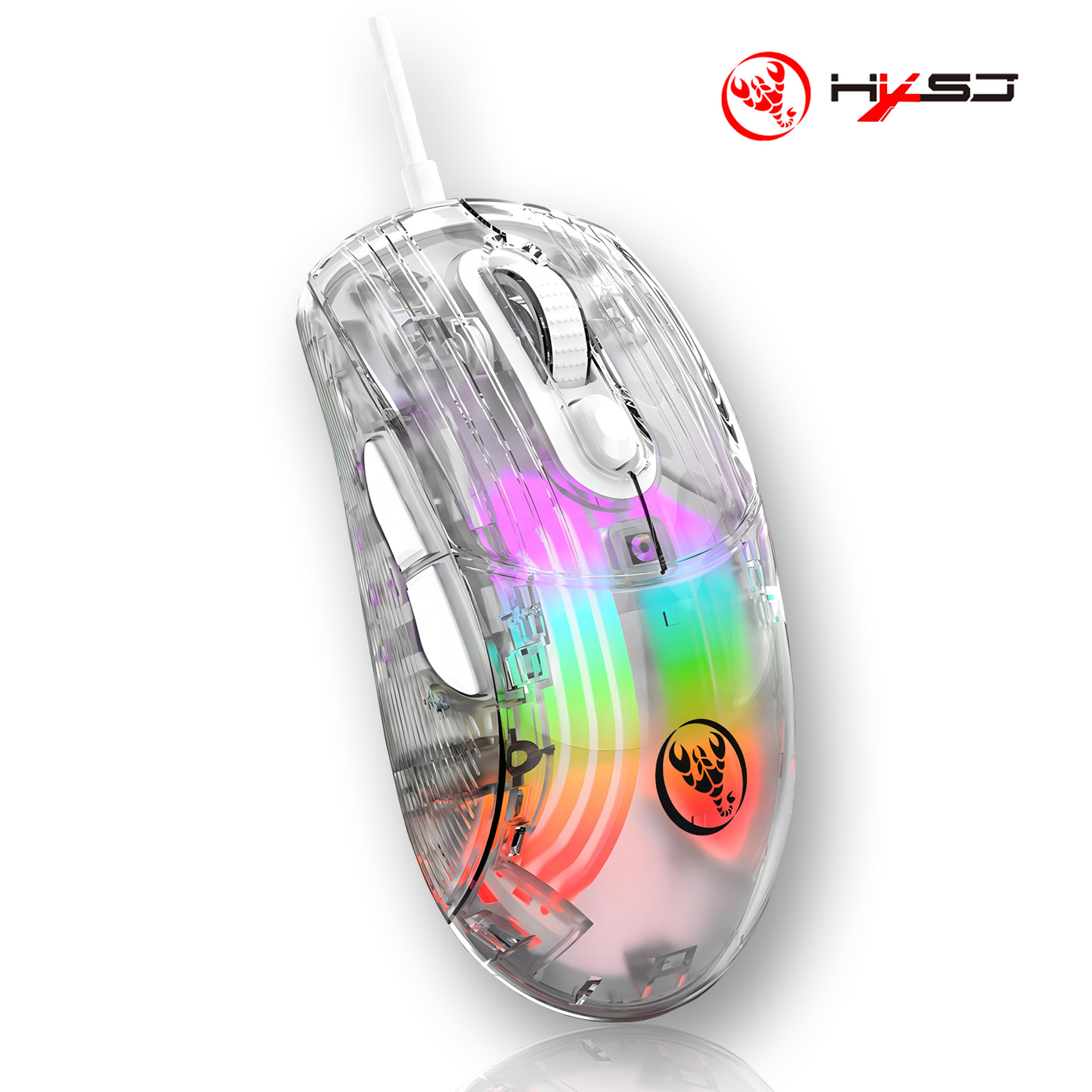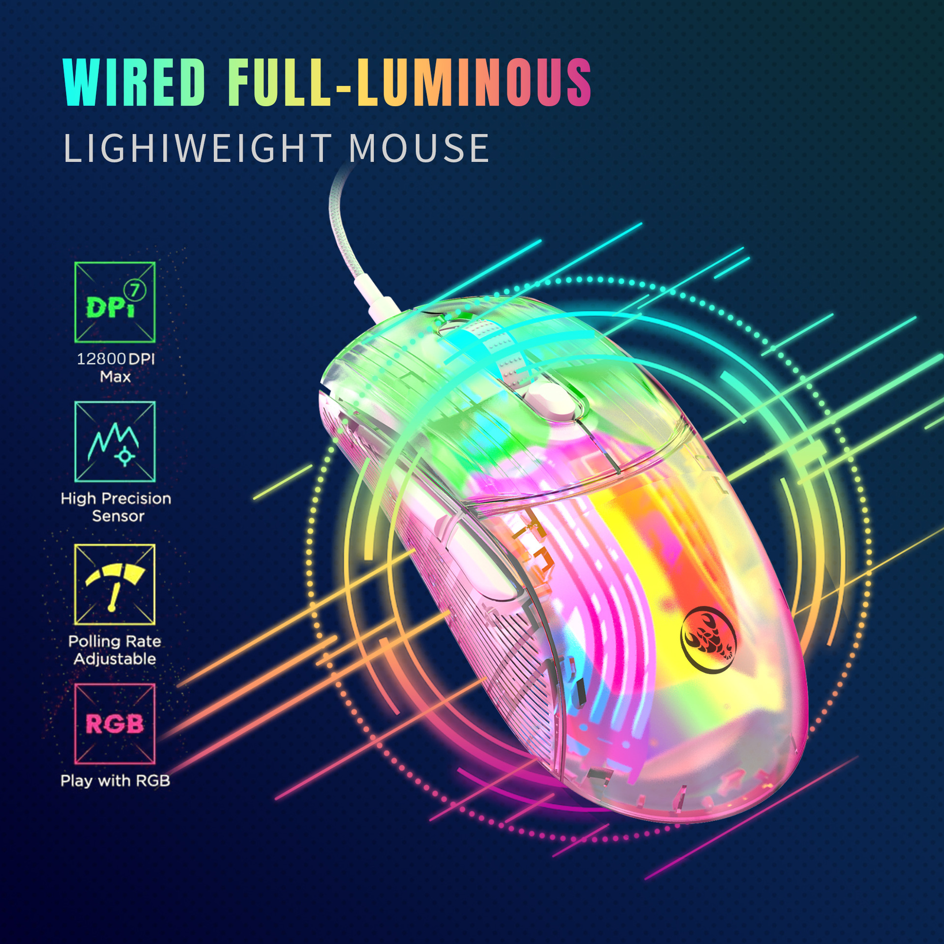Új mechanikus vezetékes átlátszó játék egér 12800DPI játék egér 7 gombos makró programozás