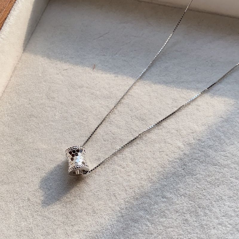 S pure silver small waist necklace for women, laser sparkling CNC honeycomb personalized simple snake bone necklace