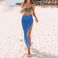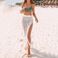 Divatos kötött, üreges bojtos, hasított blúz, tengerparti, lezser, nyaralós, hosszú szoknya