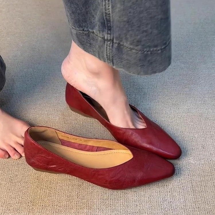 Sheepskin Version ~ Commuting Flat Women, Versatile Simple Slip-On Pointed Toe Shallow Mouth Professional Shoes For
