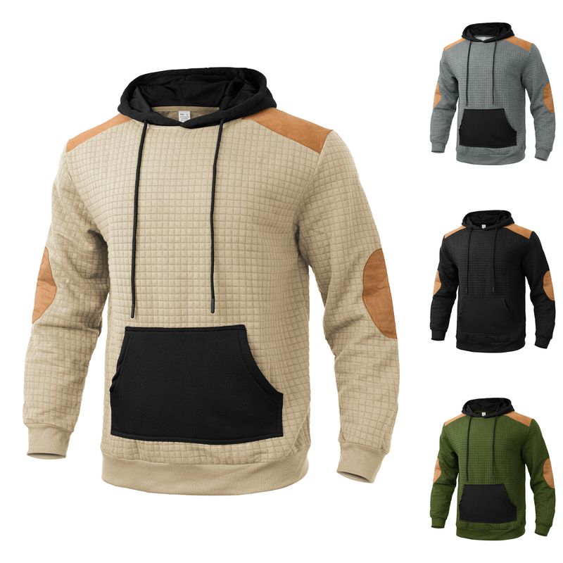 Spring and Autumn Pocket Hooded Pullover Small Check Sweatshirt Men's Casual Sports Outing