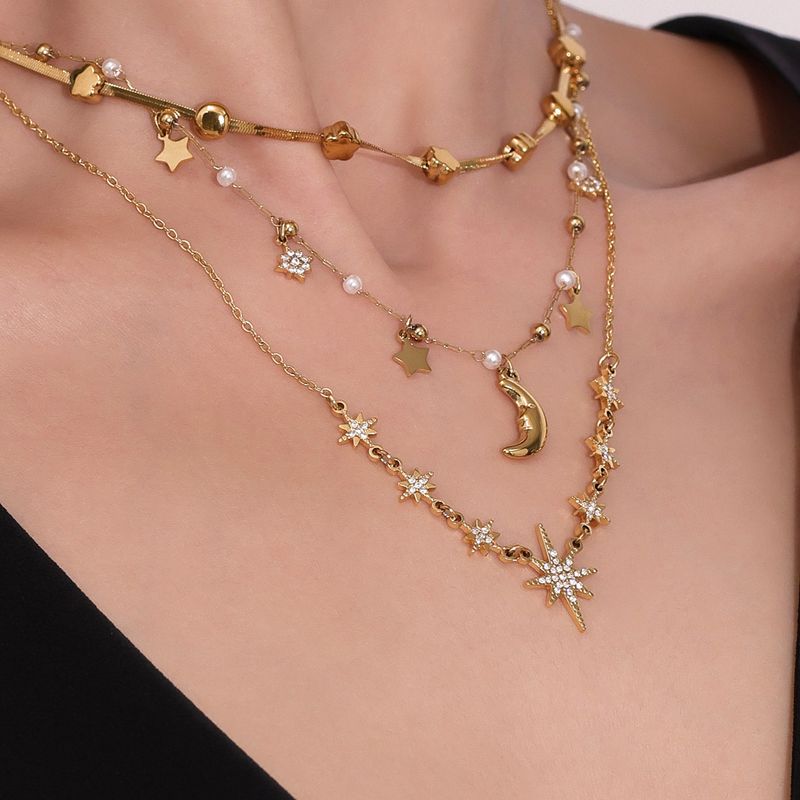 Square Sugar Stainless Steel Octagonal Star Zircon Necklace Five Leaf Flower Blade Clavicular Chain Star Moon Pendant