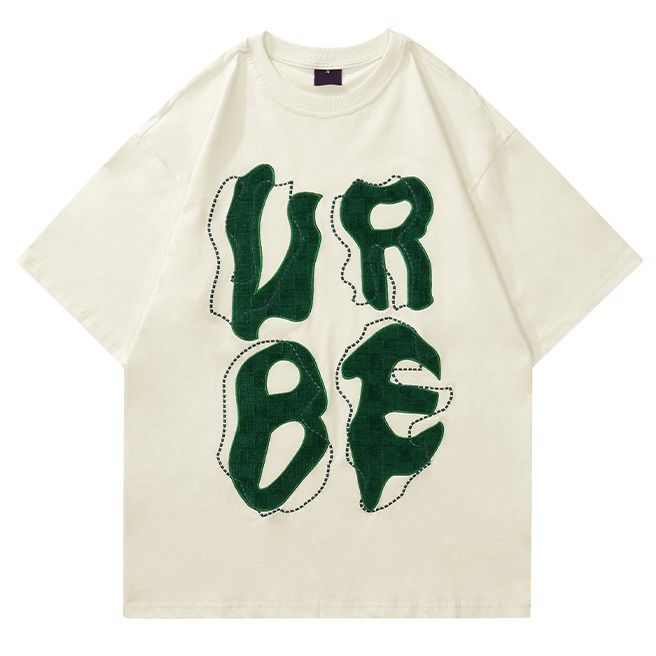 Summer new letter patch embroidered round neck short sleeved street top T-shirt men's loose casual top