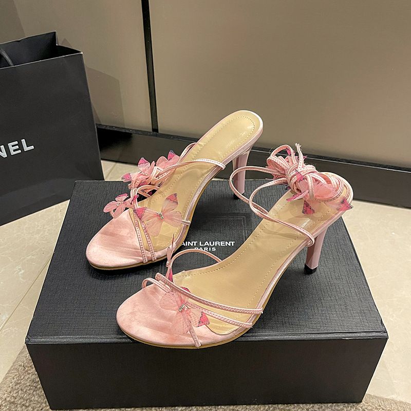 Ladies' bow binding elegant style high heels 2025 summer new item, internet celebrity, versatile skirt, exposed cool toe