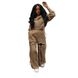 Women's Hooded Zip-Up Sweatshirt & Wide-Leg Pants Set - Edgy Distressed Two-Piece Outfit For Casual & Commute