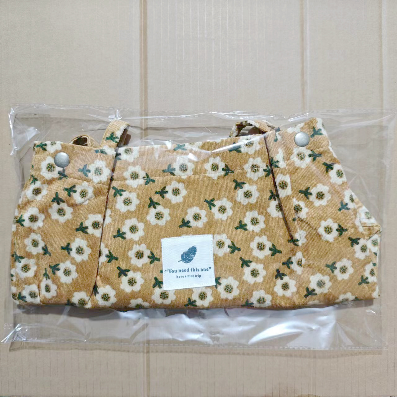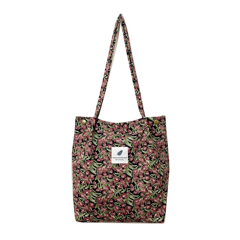 Women's printed handbag, casual Korean version, large capacity corduroy canvas bag, women's travel and shopping plush