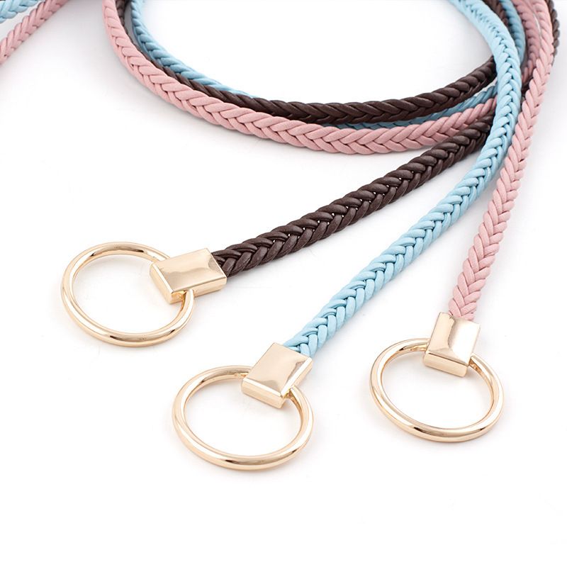 Woven knotted women's waistband fashionable and versatile alloy round buttons paired with dresses