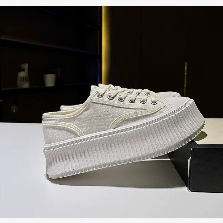 Xiaoxiangfeng Canvas For Women In Spring And Summer 2025, New Height Increasing Biscuit Shoes, Lace Up Sponge Cake Thick