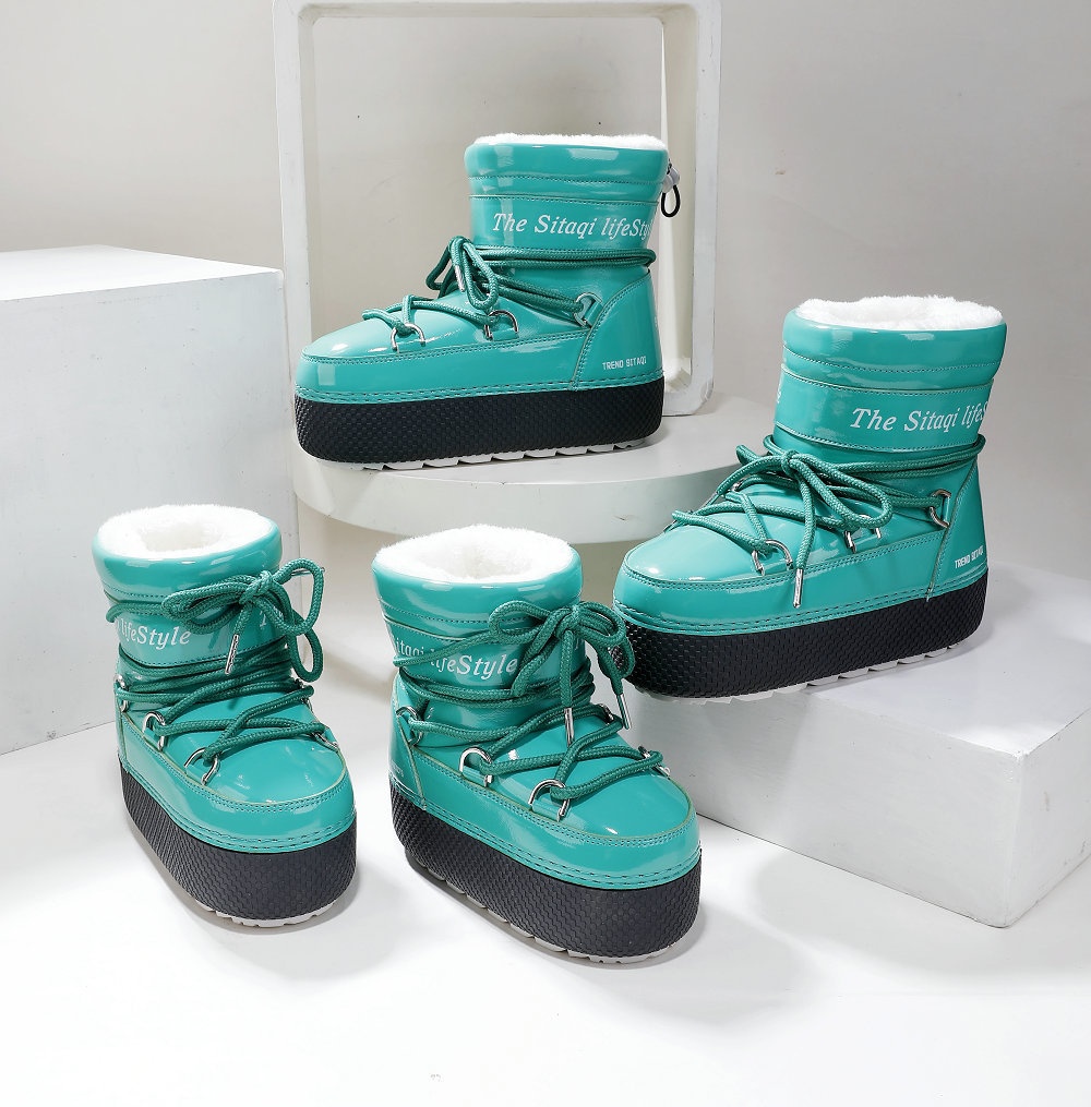 Zees Cross-Border Same Style Children's Parent-Child Snow Bright Color Ski Thick-Soled Women's Moon Thickened Waterproof